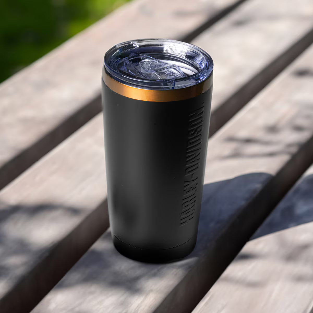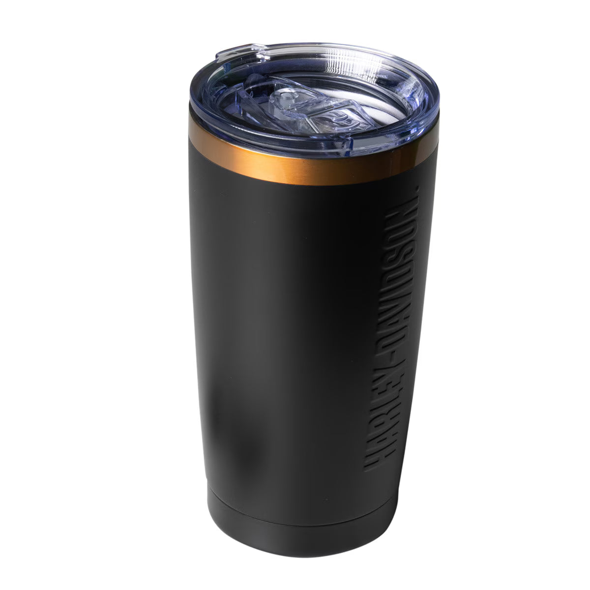 The Harley - Davidson Embossed travel mug features a vacuum insulated plastic lid with a spill prevention slide lock. The mug is made from stainless steel which is embossed with the Harley - Davidson logo. Capacity: 20 oz. / 600 ml