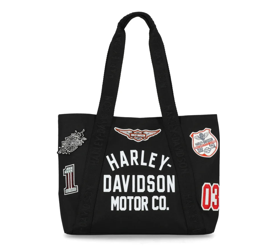 Vintage with a twist! Elevate your everyday style with this spacious and durable tote bag, meeting your everday needs with comfort and durability, featuring classic logo patches.